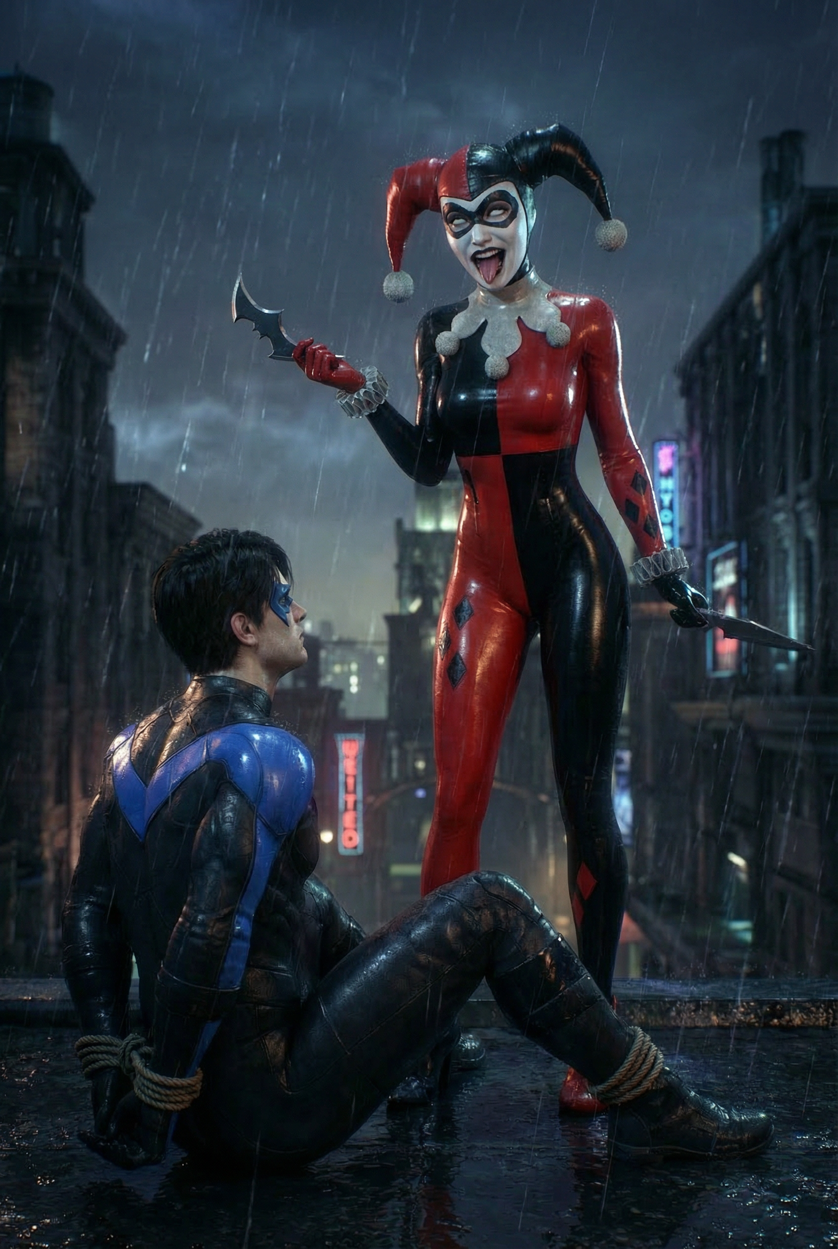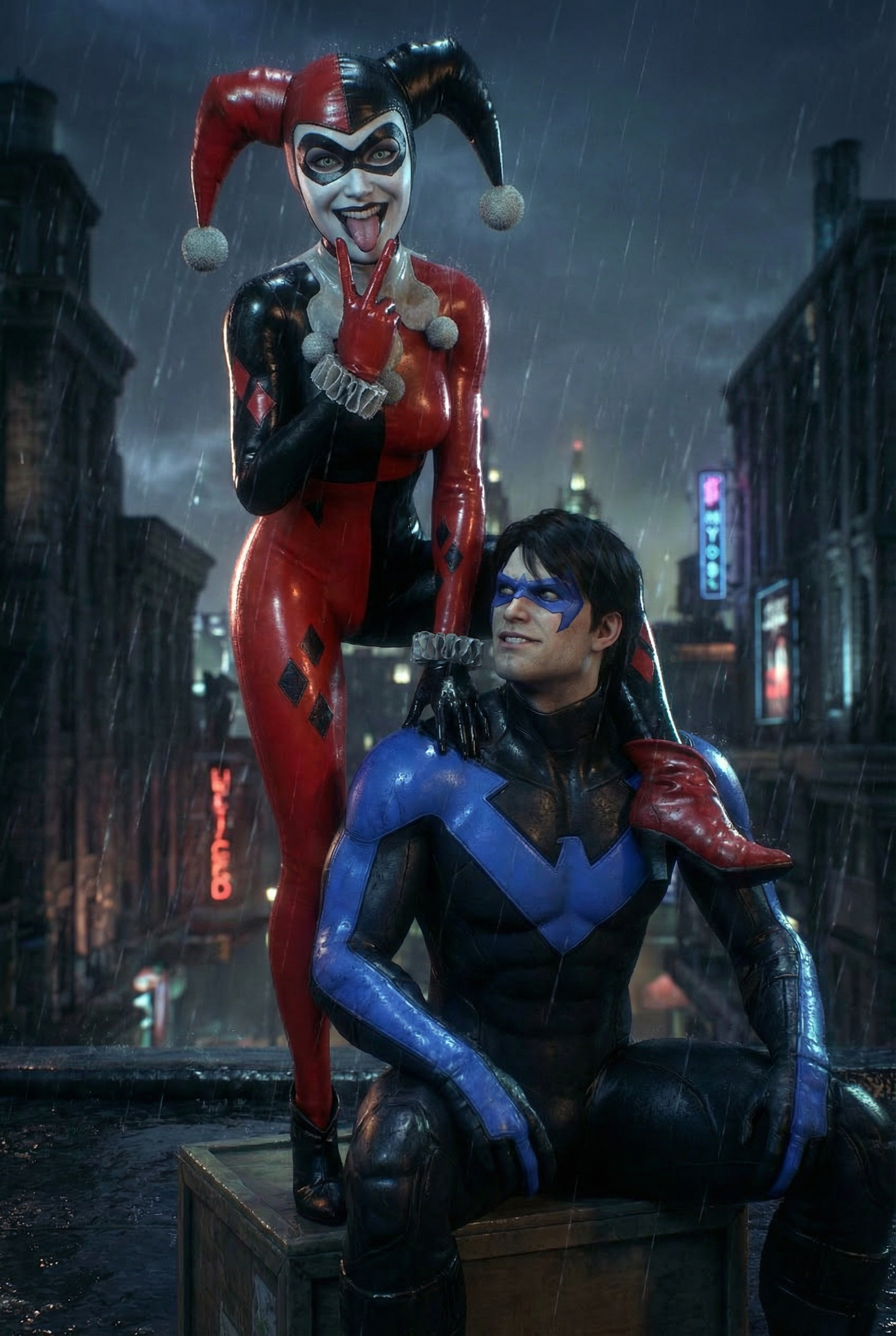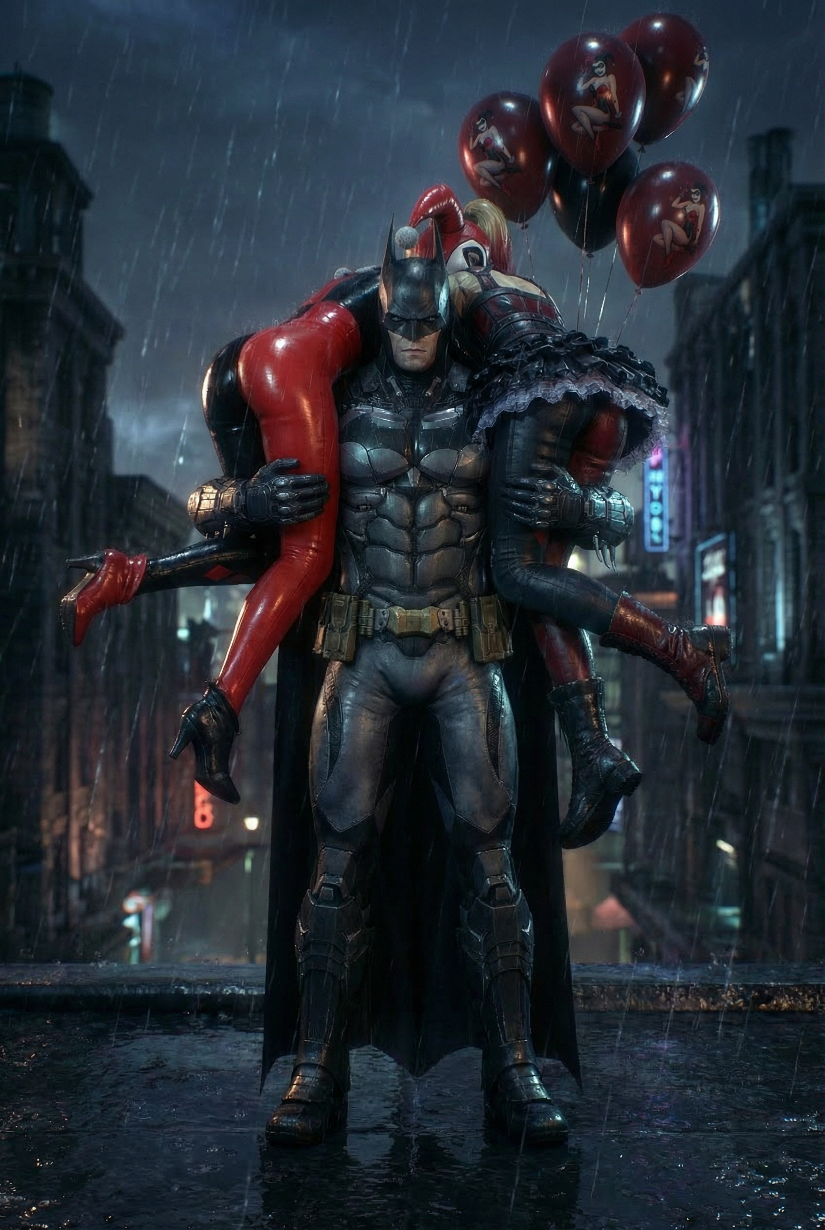 >>328775170 >Бэтмен закинул по Харли через каждое плечо. >Бэтмен стоит лицом к камере. >Харли спиной к камере. хммм, а писать типа Batman^ Arkham Knight style не надо?
