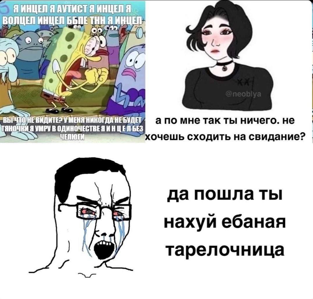 >>328739490 (OP) Всегда проигрывала с того как мужички рвуться с постановочных видосов, где берут рандом инстаблядь с патриков и задают ей вопросы типо СКОКА МУЖЫГ ДОЛЖЕН ЗАРАБАТЫВАТЬ. А ведь они верят что это реально, орево блять. Там же даже по их интонации чаще всего слышно что это жирный тралленк ради комментариев от ущемлённых мужчин, которые такому вот контенту и накручивают хайп, и как следствие плодят ещё больше таких постановочек