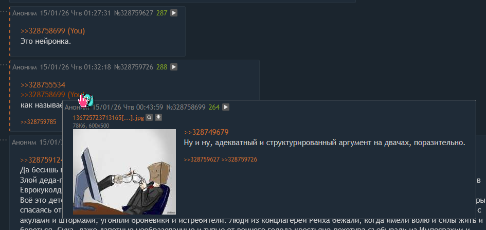 > Кармак и ромеро сделавшие дума гении Ёбаный ты валенок, это была самая обыкновенная культурная отсылка. Загугли термин или у ChatGPT спроси "слыш а чё такое культурная отсылка?", если ты такой тупой. В этом все технари — могут перечислить все нововведения в последней версии своего фреймворка, но в душе понятия не имеют, что значит культурная отсылка. В логах при отладке такое не посмотреть, да — тут всё гораздо сложнее, чем ввод-вывод...
