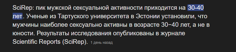 >>328781278 Как твои маняфантазии соотносятся с реальным миром? Нет, возможно ты такой, как сам и описал, и есть. Но мне кажется, что ты просто додик лет 20 не больше. Ведь ты не прав даже в тейке про пик сексуальной активности.