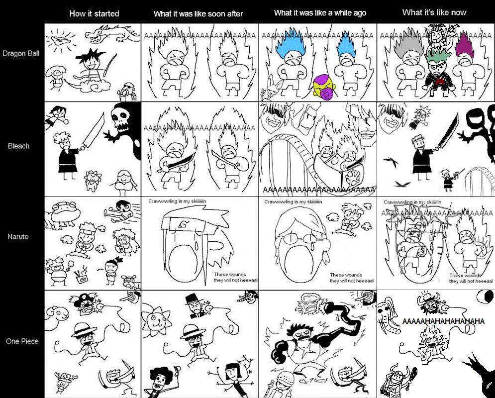 >>328784252 Хочется понять логику человека который скинул данное изображение. Его аргументы почему он придерживается схожего мнения и почему возвеличивает ван пис. Лично я просто стою на перепутье читать хантера или ванпис и хочу понять что к чему и на что время тратить. Жаль уже не то время когда можно было по 12 + часов сидеть дома в компе и катать в варкрафт и смотреть блич .