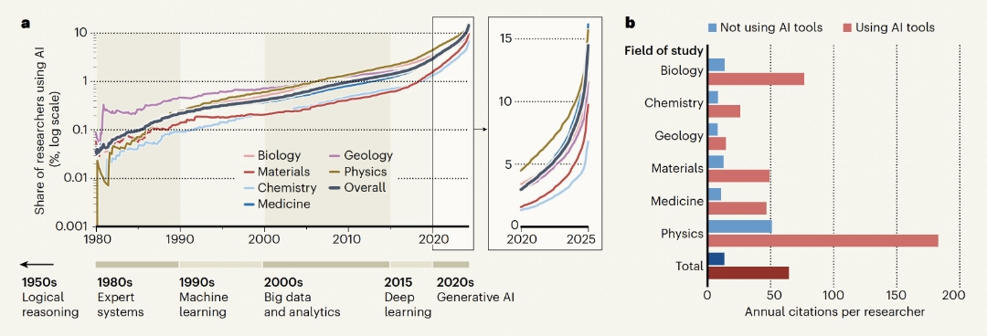 Ученые опубликовали анализ влияния генеративного ИИ на исследования. Аналитики утверждают что график их количества указывает на начало сингулярности.