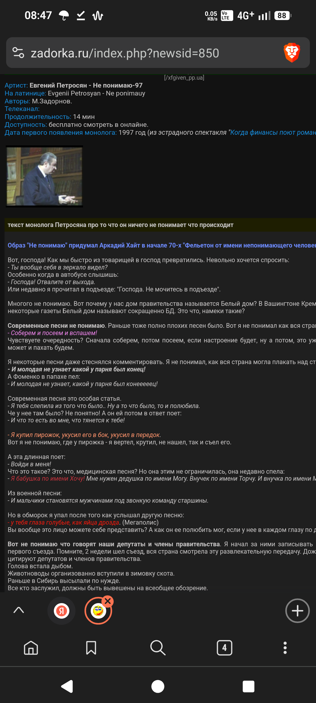 >>328805353 Последний годный у него концерт - про поездку в Ебипет. Это было где-то в начале 2000х. Потом уже да, постарел и начал нести несмешную ахинею. Ну блять все люди такие, что в молодости мозг работает лучше, нежели ближе к концу. С этим ничего не поделать