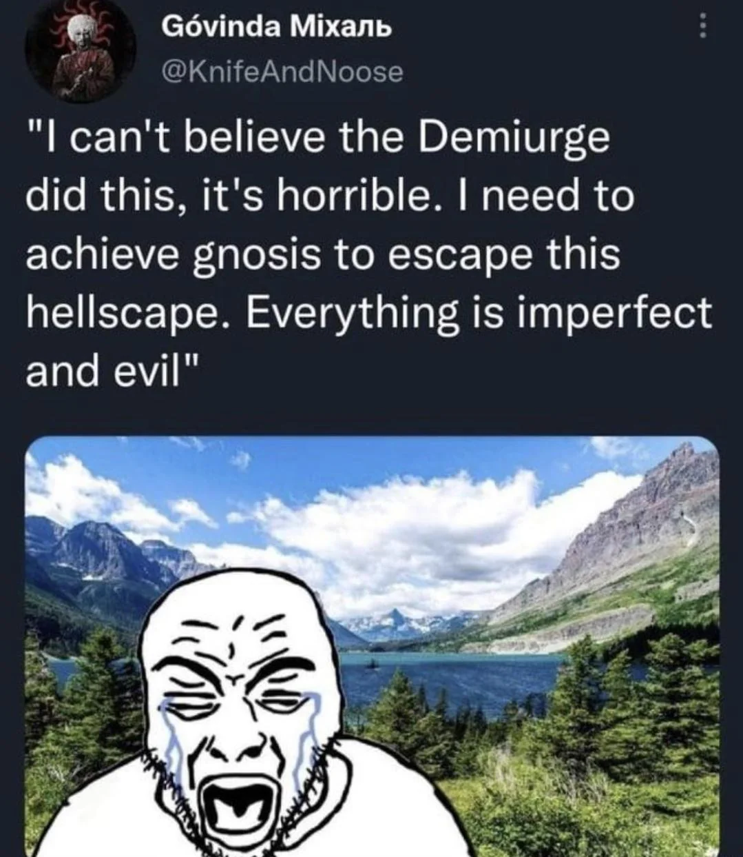 Звучит как база, сам до этого дошел. Нихуя не читал про этих ваших гностиков. Правда в моей идеологии не было средних, но в полное оправдано на существование. И да нас/биомасса будет страдать по праву своего рождения. Всех конечно хуже средним получается, они ни рыба ни мясо и на изи скатятся до червей пидоров.