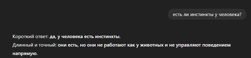 >>328802548 Глупенький, я не говорил что У ЛЮДЕЙ НЕТ ИНСТИКТОВ