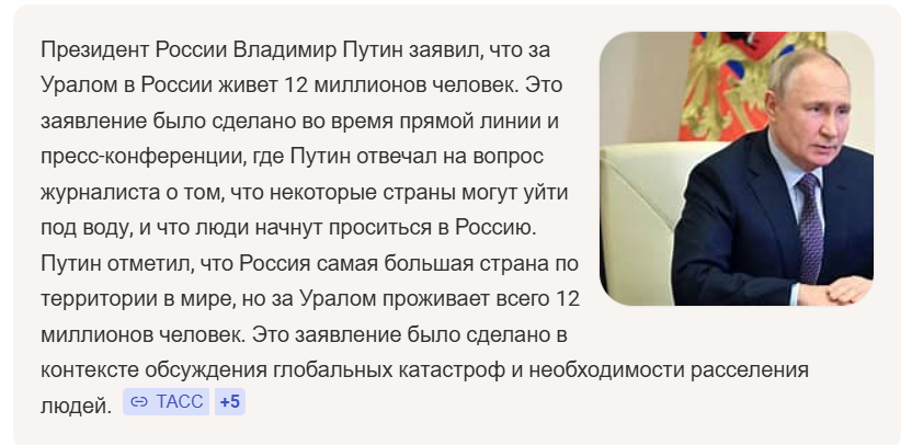 >Более 69 % населения России живёт в европейской части, которая занимает лишь 20 % территории страны И это всё ещё охуеть какие огромные территории по сравнению с той же Европой где между столицами порой такое же расстояние как между областями в европейской части РФ. Ещё не забываем про глобальное потепление, а даже 1% оттаявших земель при размерах РФ это дохуя как много. Ну и про залежи всякого полезного не забывай, дурачок.