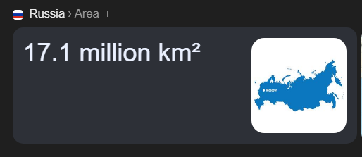 >>328803147 (OP) Площадь рф 17 миллионов квадратных километров, когда самый крупные страны в мире не доходят даже до 10. Площадь рф это как две площади СШа или Канады. Тупой ты утырок.