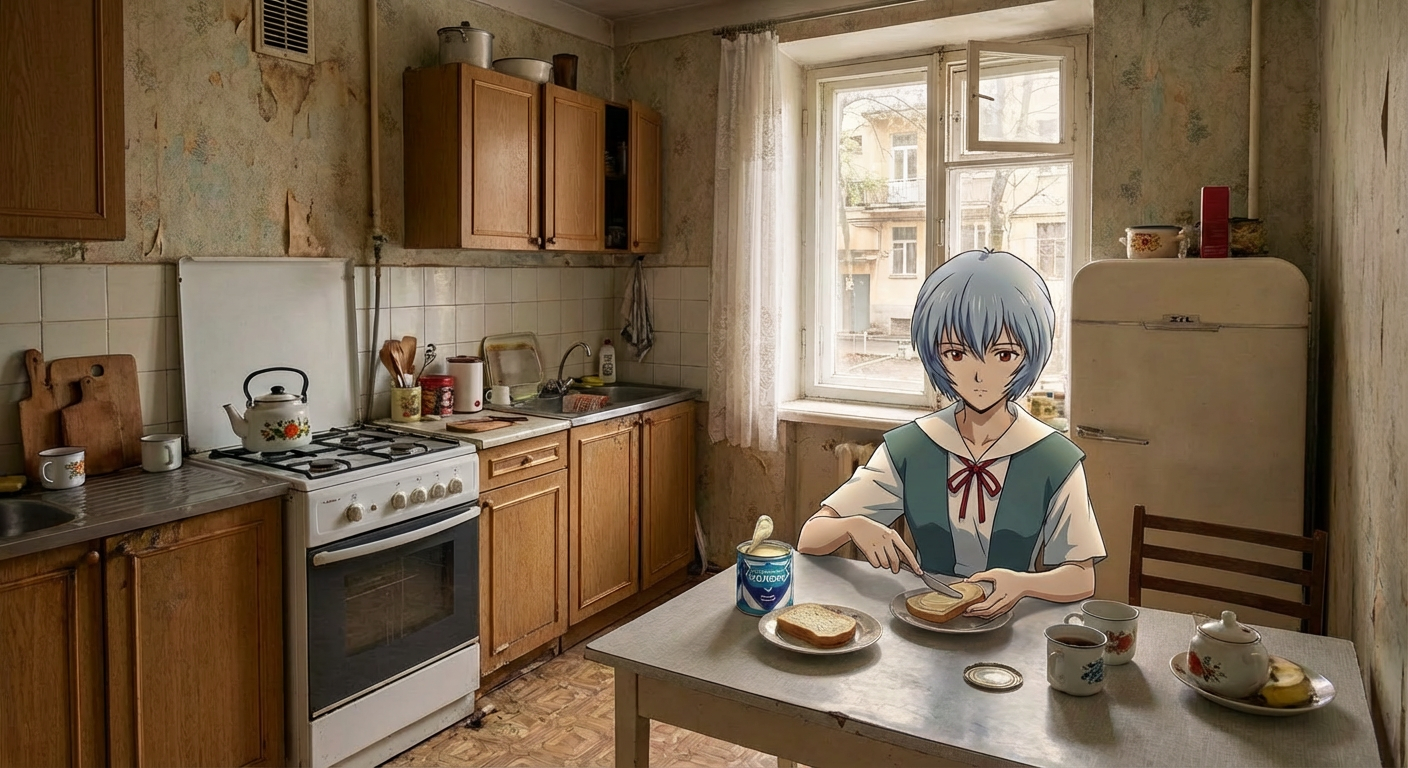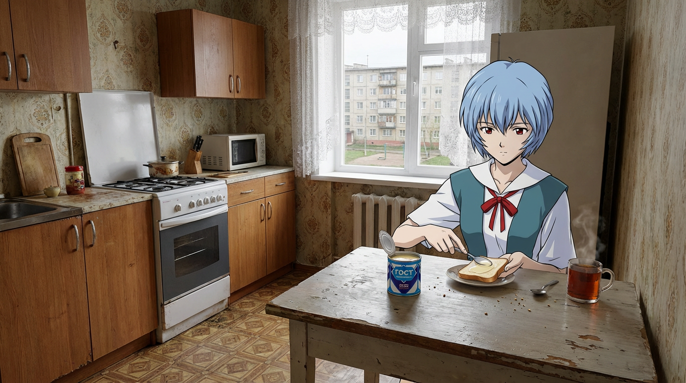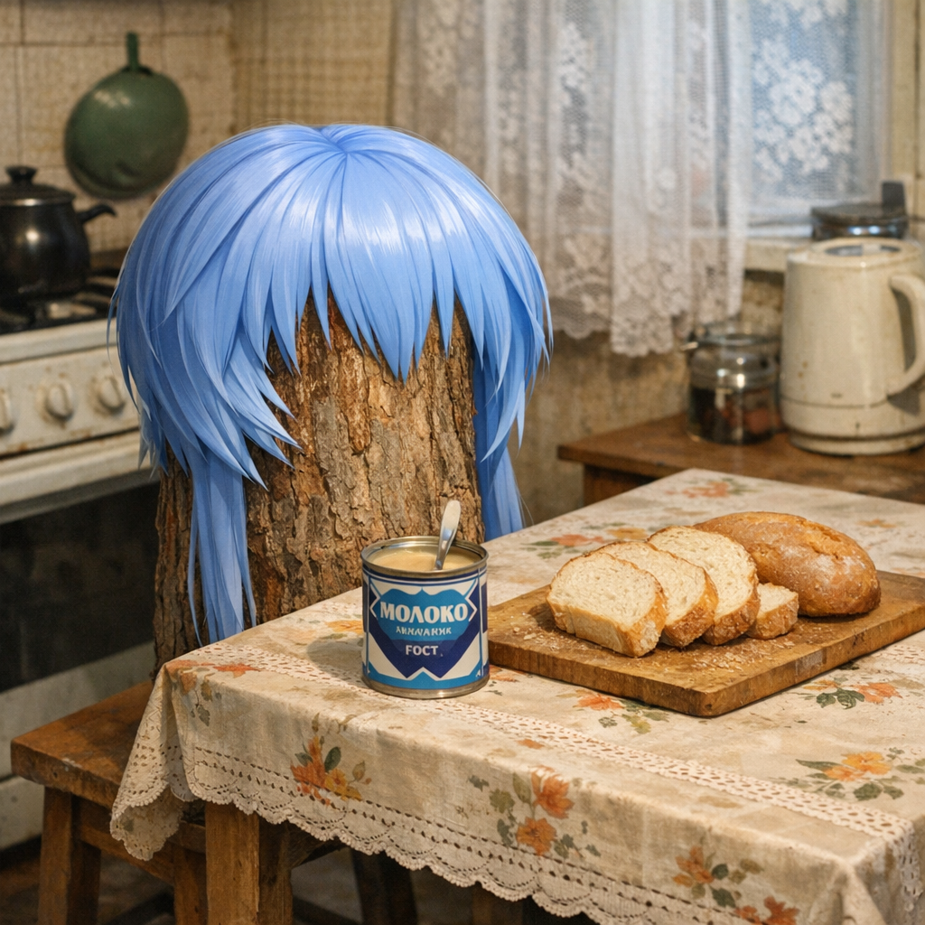 >>328940663 Я куки нюканул и кеш. Щас дословно вспомню: Аянами Рей сидит за столом на кухне в хрущёвке и мажет сгущёнку на хлеб. Аянами Рей в стиле аниме, кухня в реализме. >>328941188 Не, я просто всратый промт выше написал, и она сама поняла. Ничего больше не уточнял и картинки не прикреплял.