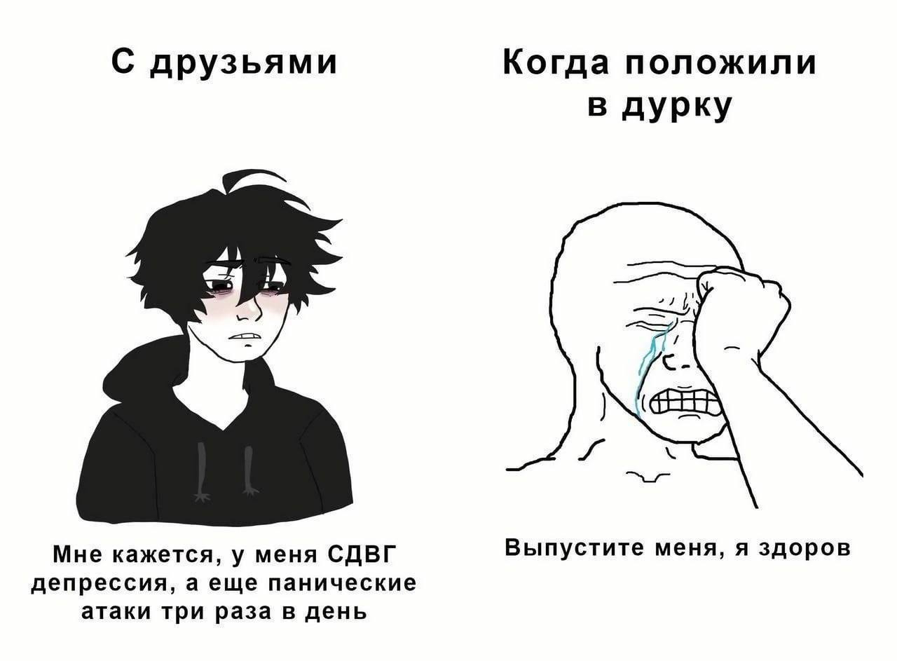 Я лежал в НИИ Психиатрии в Москве и потом еще меня оттуда отправили в типа санаторий который у них есть. Хуйня без задач. Все люди делились там на 2 группы - нормисы, которые сюда прилегли полежать между работками или после сессии в унике, на деле обычные социки из богатых семей, но их родаки просто верят в психиатрию. Вторая половина реально больные депрессаны и шизы и полушизы, но я за ДВА МЕСЯЦА пребывания там вообще не увидел, чтобы им стало лучше.