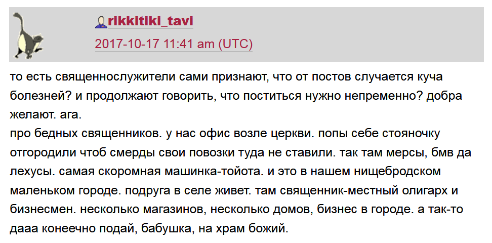 "Не хочешь иметь дело с РПЦ - твое тело будут иметь в жопу зеки" - вот как надо с ними! Чтобы поняли что не правы.
