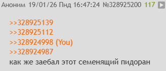 >одни оскорбления и озлобленность Я пишу это без ненависти, мой обычный стиль речи ирл с такими как вы, пролетериатом кривозубым. Как правило, нет хорошего пролетериата - каждое оскорбление заслуженно, поскольку такие как ты состоят из косяков и вырождения, и мыслят шаблонами помойных крыс.