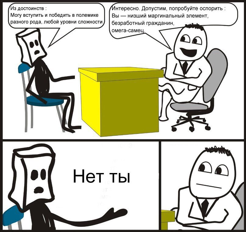 >>328938013 >провести на бордах полтора-два десятка лет в дискуссиях Так борды уже умерли, считай. Особенно в РФ. Во внутренний диалог и самокритику я, увы, не умею. В плане, ставить что-то под сомнение - да, но не разговаривать с собой у себя же в голове. >Что также придаёт легитимность абсолютно всем твоим жизненным решениям и приоритетам. В теории это так работать должно, по факту оно не. Всегда нужно идти на компромиссы, уважать чужие личные границы, не нарушать закон и др.
