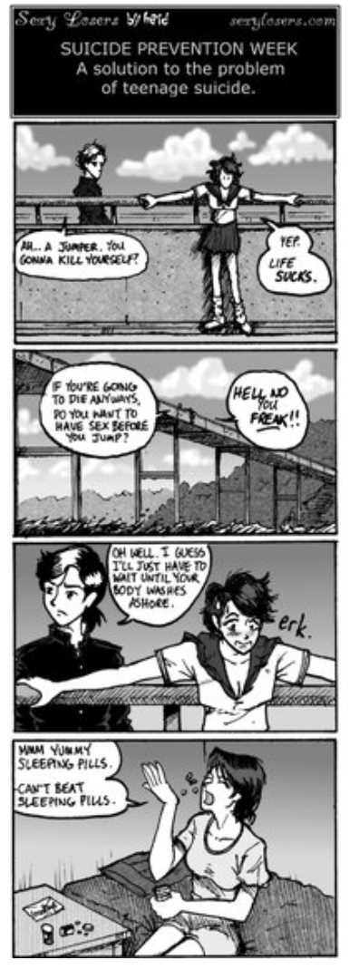 >>328963549 Вообще обычно люди выбираются из депрессии когда у них рядом кто то есть, но не всегда, если человек действительно заебаный жизнью то он дальше сам выбирает дорогу, или суицыд или страдания