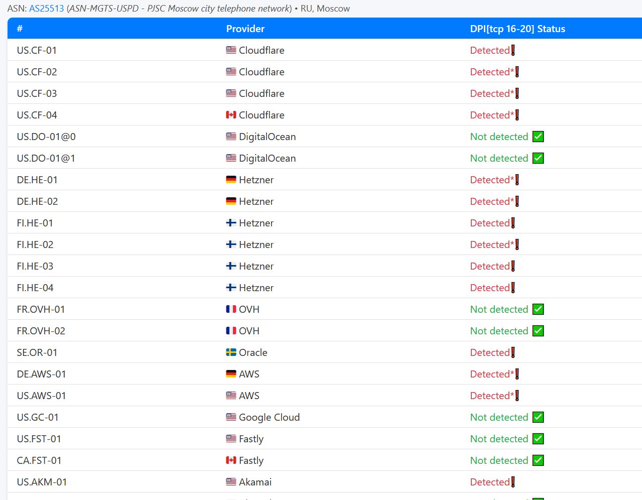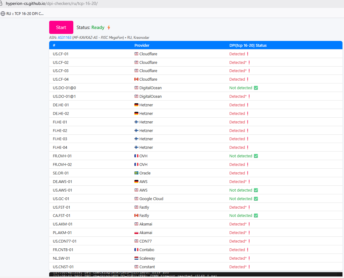 >>328956044 Не только. Под 16Кбайт-блок из крупных CDN и хостеров попали еще большая часть диапазонов Akamai, Amazon Web Service, CDN77, Constant, Contabo, DigitalOcean, Fastly, Google Cloud, Hetzner, OVH, Oracle Cloud, Scaleway.