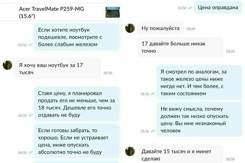 >>328948758 (OP) Лел я помню как то продавал новый телефон, который стоил 19к, за 16 и мне по классике написал хрюндель что купит за 7. На отказ начал выебыватся типа у тебя никто не купит, продавай пока я добрый, ну я конечно же послал его нахуй. И через два дня спокойно продал телебон за 16к .