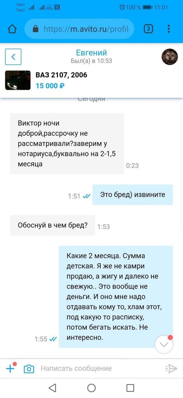 Не здороваюсь на авито. Покупатель пишет здраствуйие и молчит. ДеБил. Не здороваюсь отвечаю что то стандартное " товар продается и где можно посмотреть забрать" что бы сэкономит свое время на дальнейшую мозгоеблю