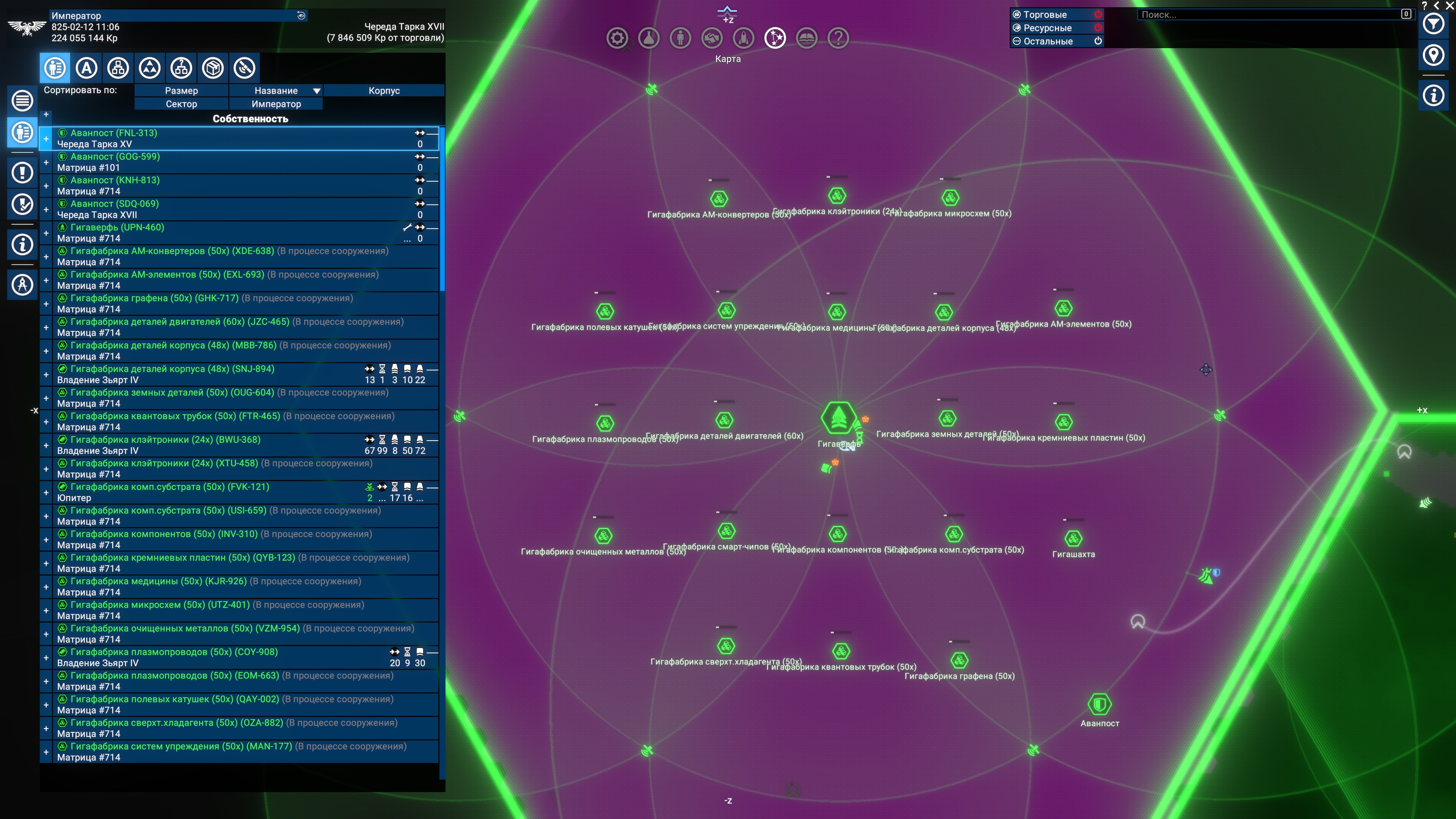 Цели по очистке Череды Тарка и близлежащих секторов от присутствия ксенонов выполнены. В этом треде я буду застраиваться и заниматься душнейшим микроменеджментом. Нужно разметить и построить с десяток гигафабрик, а затем объединить их в единую производственную цепочку. По окончании строительства это должно дать мне возможность бесперебойно штамповать на верфи эсминцы, корветы и прочую военную технику.