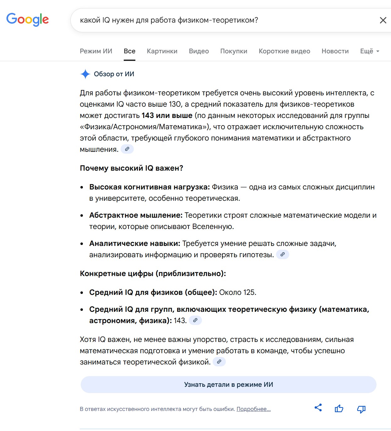 ну а тест айсикью штука скорее технарская, например великий композитор и одновременно человек широчайших знаний и жизненного опыта вполне завалит этот тест на уровне 85-90.