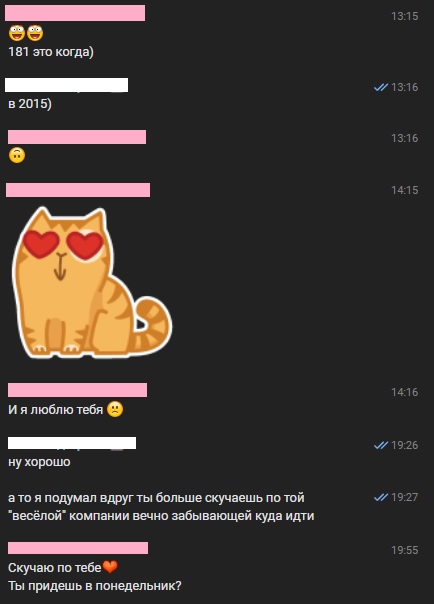 Дефолтная холодная переписка когда ты тянку заебал и она хочет расстаться.Это она еще мягко с тобой общалась и хоть как то отвечала, бывает гораздо жестче