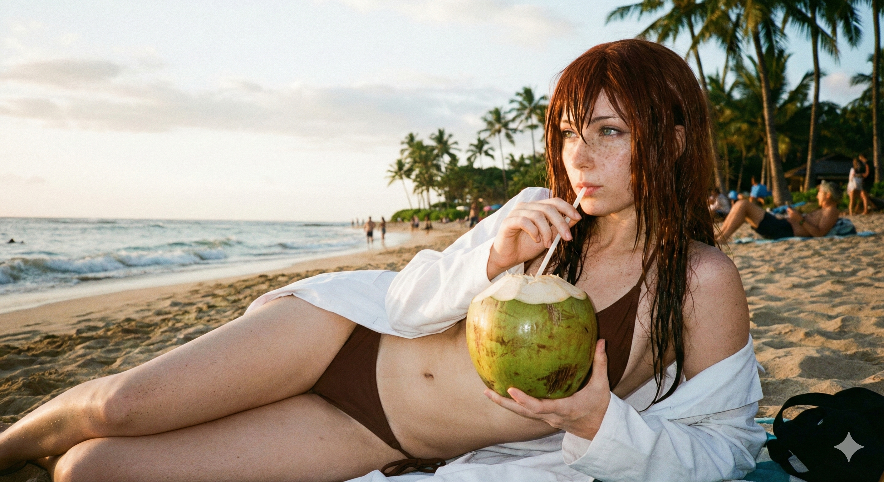 Тогда могу предложить в таком же формате её где-нибудь на филиппинских пляжах на лежанке под зонтиком попивая кокосовый сок. Реально идей оригинальных нет, творчество не моё...