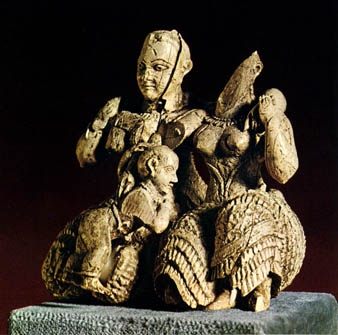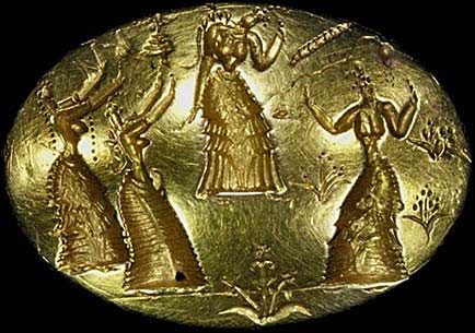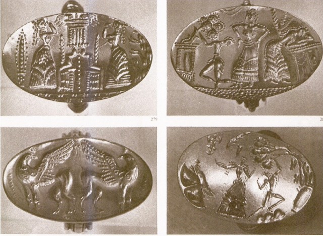 Отпечаток печати-перстня (сама печать не найдена, есть только слепок) Центральаня фигура баба высокого статуса, вероятно правительница или объект поклонения. Огромные сисики торчат наружу.