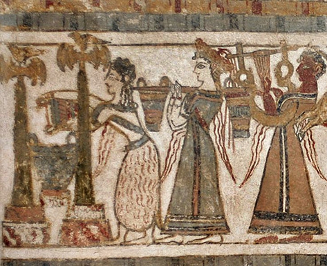 >>329000782 Иштар (она же Астарта на греческом) это чисто семитская баба, с минойцами никак не связана. Тут скорее дело в другом. То, что археологи 19 века называли минойскими богинями, на самом деле вполне могли быть настоящие мясные бабы, взявшие на себя административные или ритуальные функции на берегу. У минойцев много фресок, где не обозначенные какой-то божественностью бабы проводят явно ритуальные действия. Например эта. Не очень понятно, в чём суть ритуала, но это точно ритуал, судя по наличию золотых церемониальных лабрисов.