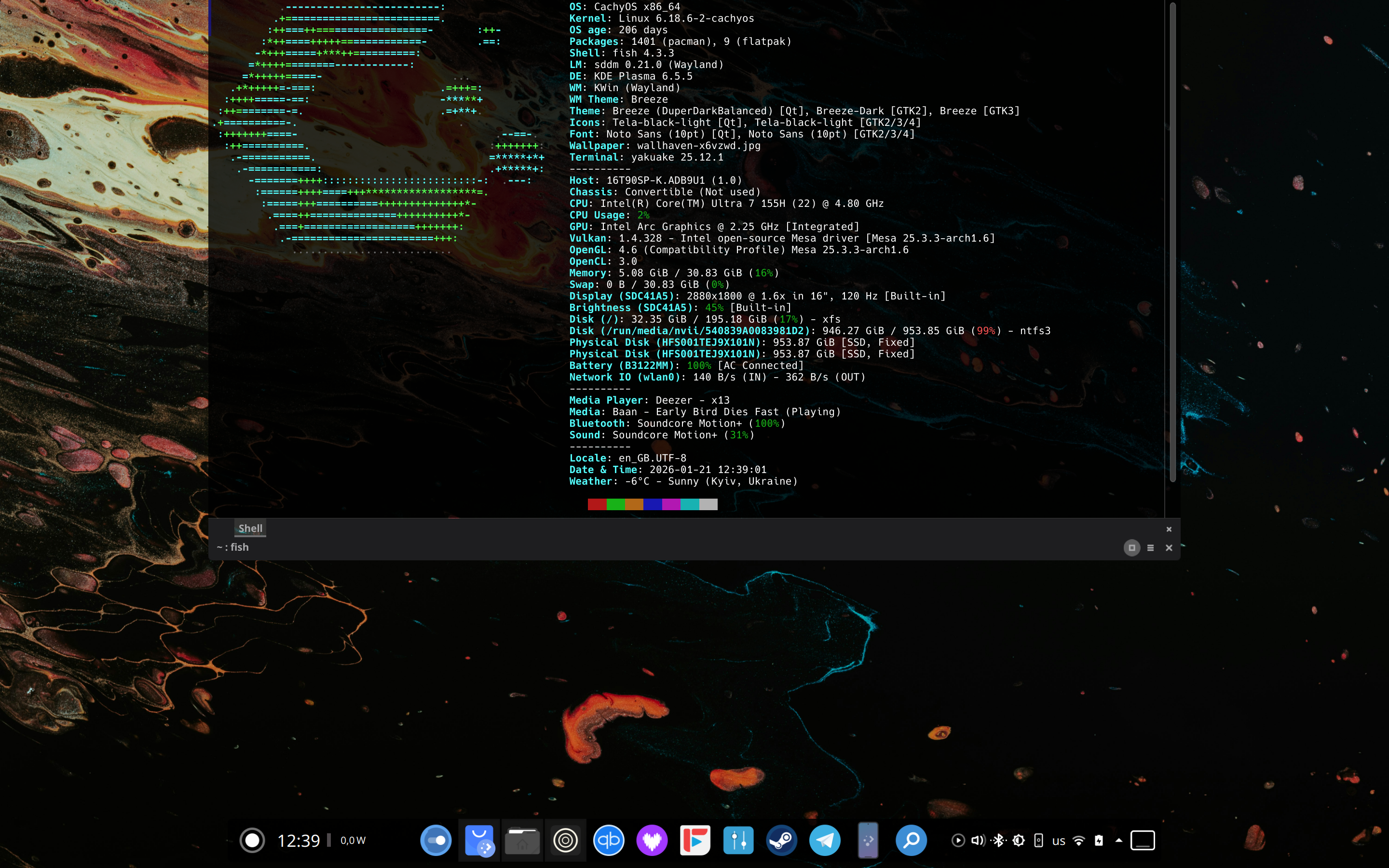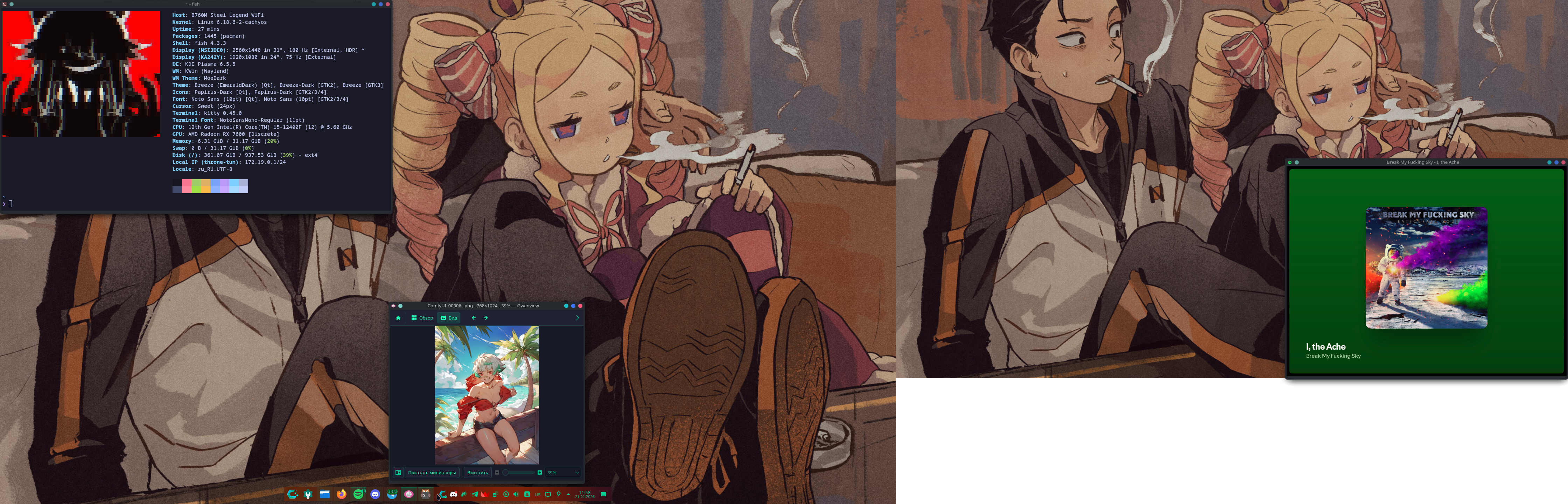 При первом включении KDE будто умирала карточка и висла на рабочем столе аж 2 раза, потом чёт ставила другой драйвер, потом заработало, просто ужас, теперь я подопытная крольчиха на этой тестовой ветке бздуна, прост пиздец, извите за мат!