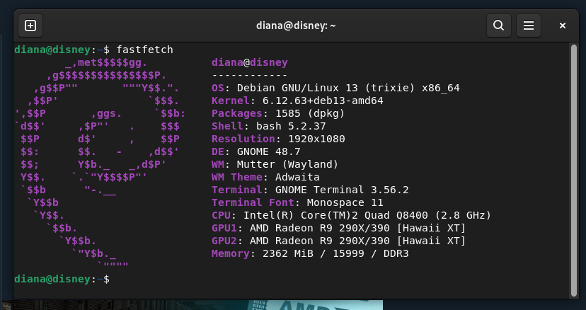 По прежнему абсолютно пустая система и пол дня убила на настройку сети, ещё половину дня пыталась утихомирить мою 295x2.