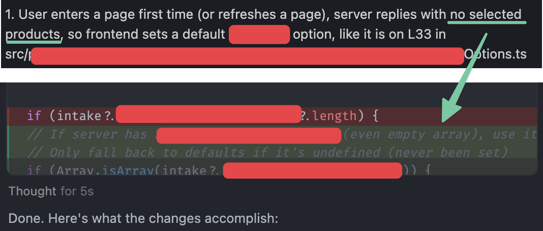ЕДИНСТВЕННЫЙ способ заставить это поделие выдавать что-то годное, это описывать технические (действительно технические, а не высираемое менеджерами) требования всеобъемлющего масштаба, продумывая каждый потенциальный въеб нейросетки и описывая пути избежания. Но с этим появляется проблема, когда ты вынужден писать эту доку не для нового кода, а для существующего, в этом случае к необходимости вышеперечисленного добавляется необходимость описать, как работает текущий код, где там насрано и где какие-нибудь грязные хаки, что из этого нельзя трогать, etc.etc.