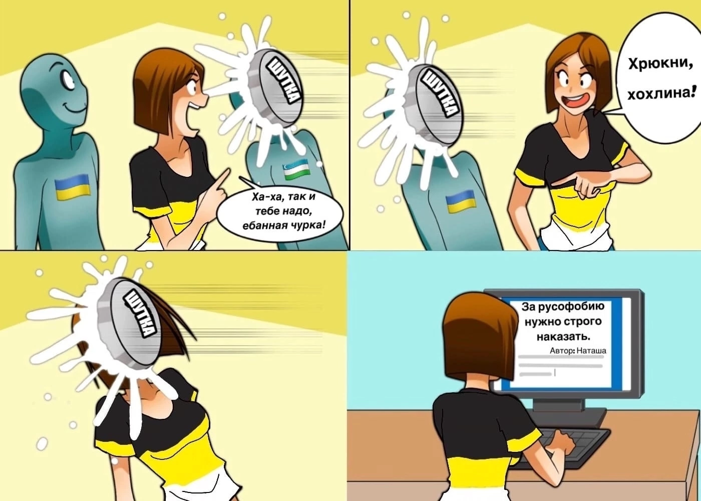 >>329051727 НЕЕЕТ, только русские (русичи) могут уничижительно обзывать другие народы - хохлы, мамбеты, бульбаши, узкоглазые, мастурбеки, чурки, хачи, лабусы, шпроты, жиды, пендосы, гейропейцы. Но стоит в ответ услышать урус, кацап, москаль, русиш швайне, узкий - сразу загорается пламя справедливого возмущения в глазах РУСИЧА - да как ТАК, да как ЕГО , обзывают???
