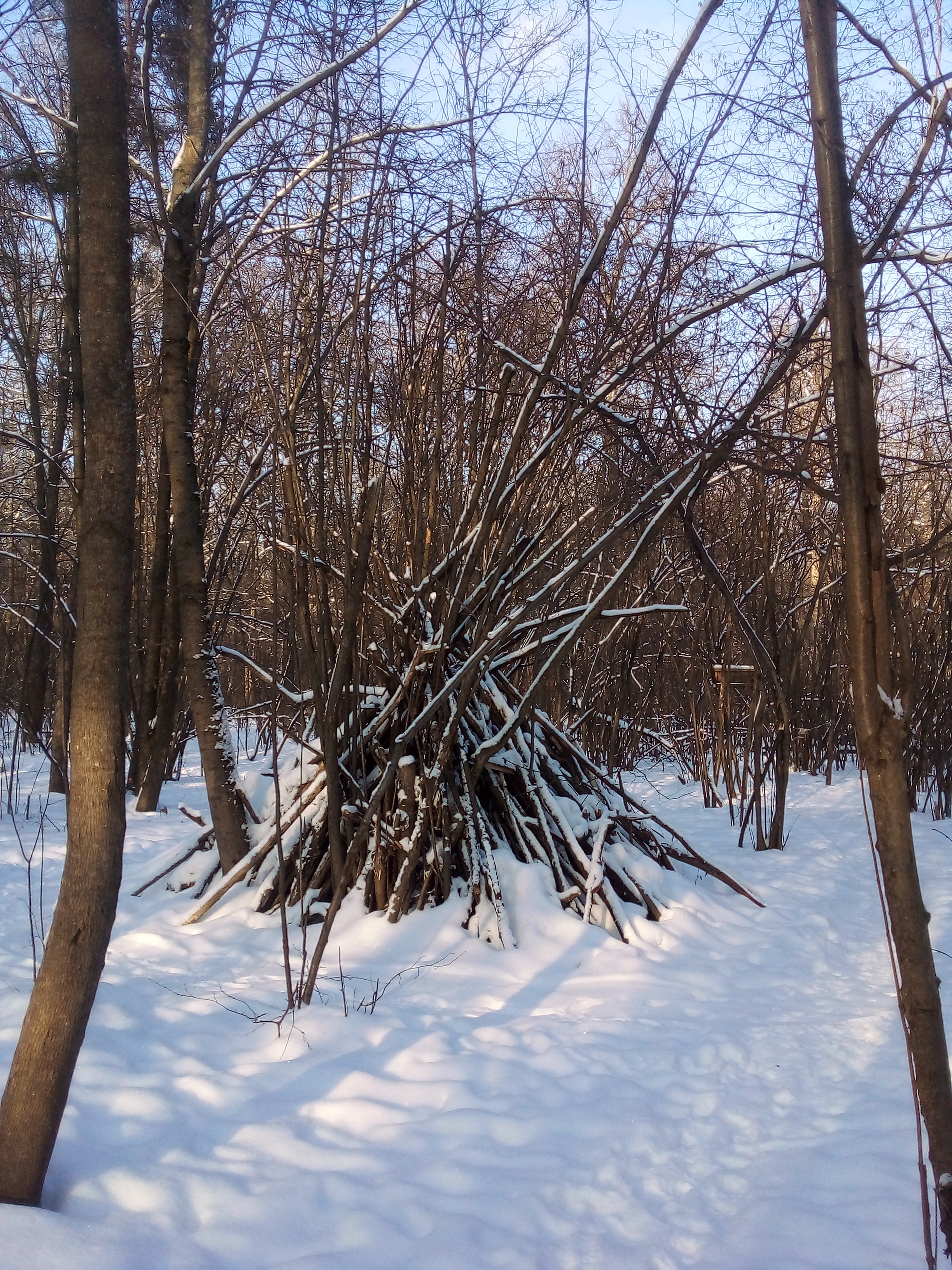 Ночевал в таком 3 дня зимой - говно. Но выжить можно. Лучше палатку с печкой или просто печка и каркасный вигвам типа палатки, типа мини бытовки размером с палатку или такой же мини вигвам. Печка - ключевой момент. Если нет печки то придется такую хуету городить. Хуево сделал каналы - угоришь, задохнешься.