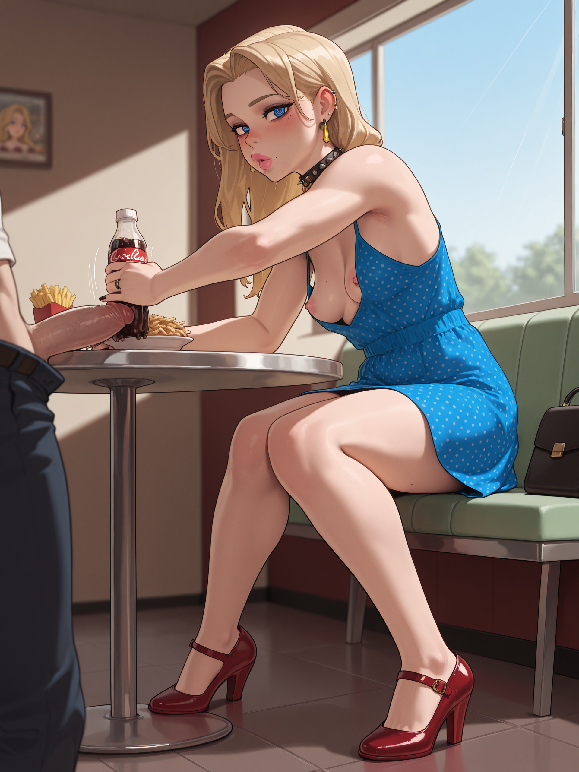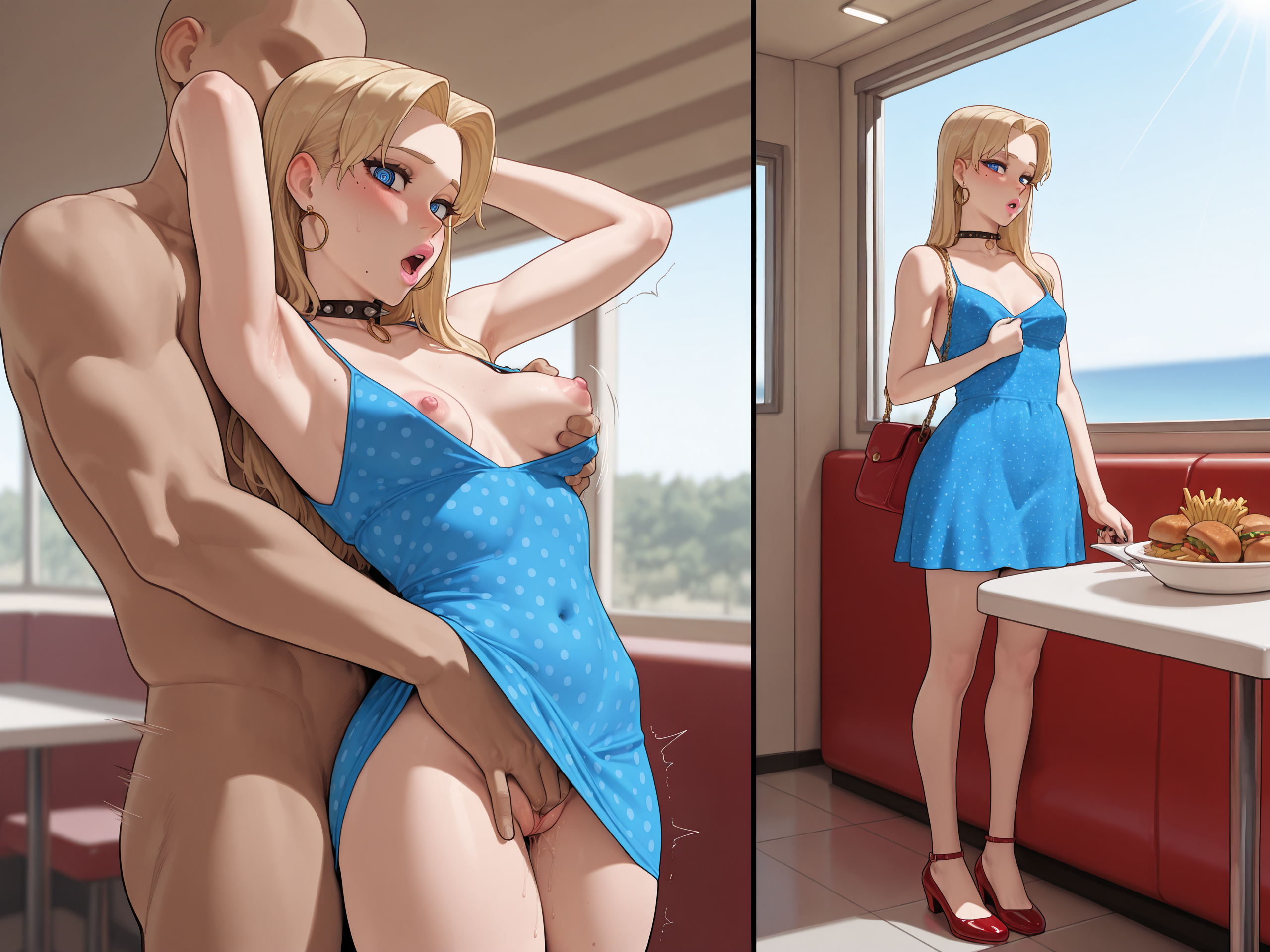 >>329079694 Можно с ней эротики немного? Пусть начнёт расстегивать ремень для начала, второй пик - болтающийся ремень расстёгнутый, третий пик - одна рука приподнимает топик и рука уходит под него, сжимая грудь, вторая рука стягивает шорты вниз, обнажая трусики. Четвёртый пик - стоит спиной, нагнувшись вперёд, ноги вместе, шорты стянуты, слегка стянуты трусики, руки лежат на её заднице, она оглядывается назад в камеру и ехидно улыбается. В целом эмоций добавить ей ехидной сексуальности такой, чтобы подначивала и дразнила анона.