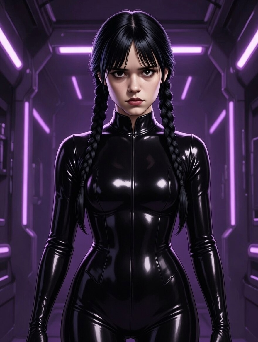 >>329077303 (OP) Проскакивала тут Уэнсдей, стоящая в чем-то вроде шлюза космического корабля, с фиолетовым неоновым освещением. В фиолетовом кожаном комбезе. Реквестирую версию в черном латексе.