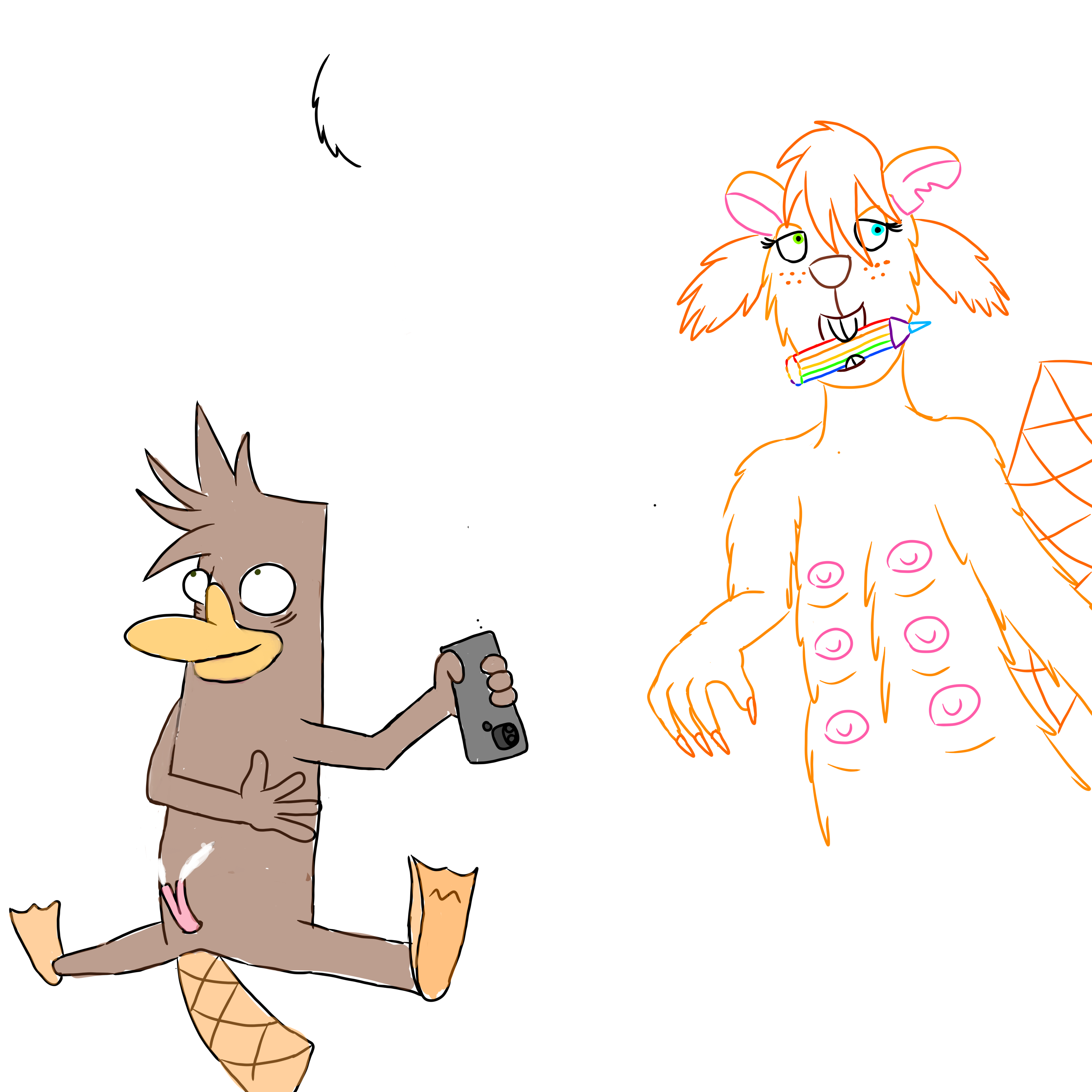 На боброхвосте Рыжелины сидит её друг, Корри Утконос (3-4) и нажимает ладонью на один из сосков бобрихи, упрашивая Рыжелину повернуть в сторону нажатия.