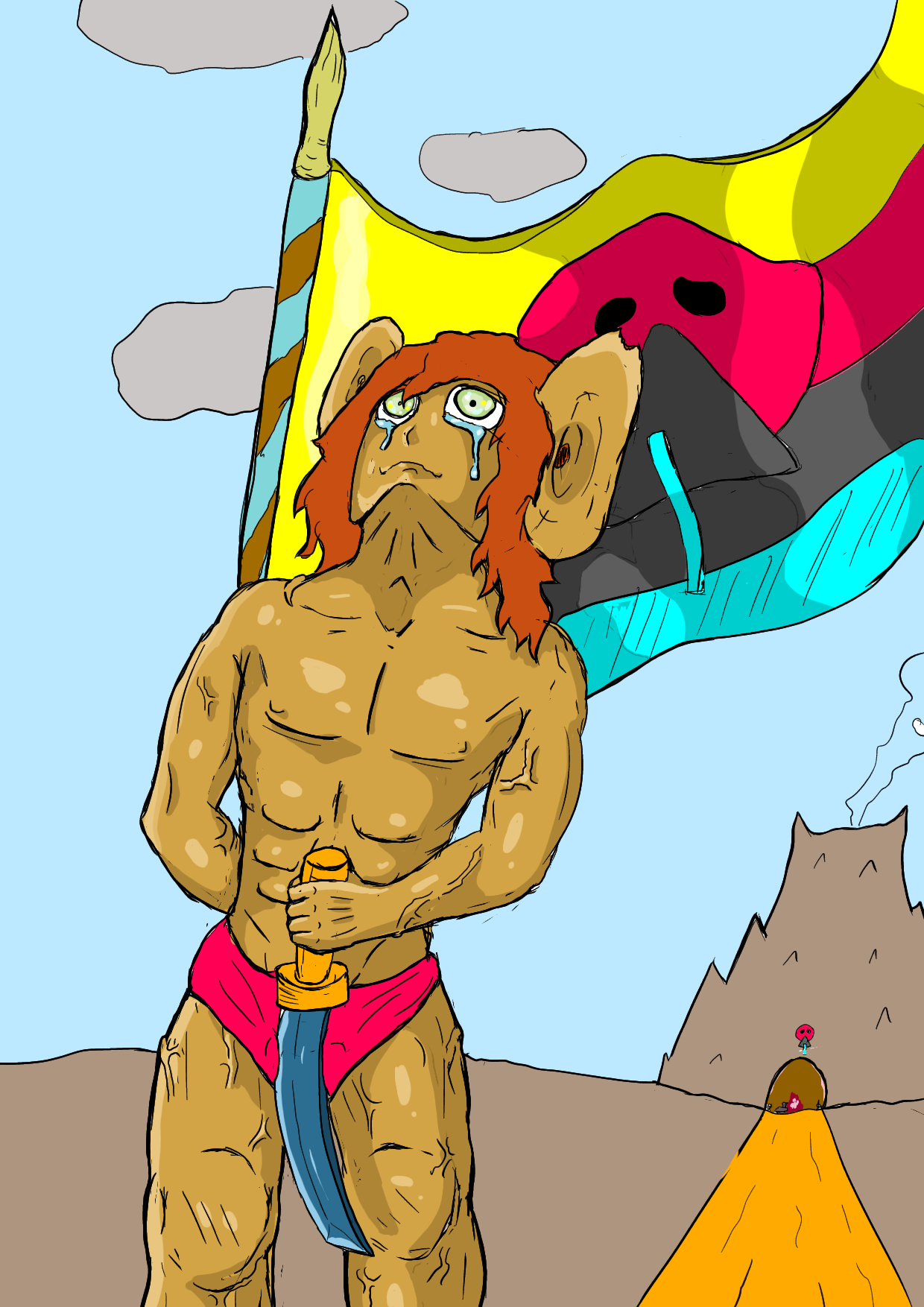 Пожалуйста, нарисуйте полного кокатриса в роли флагшток-куна. Но флажком он воодушевленно машет не из привычного места, а из своей кал-остомы. Дополнительные баллы благодарности если флаг будет римской империи