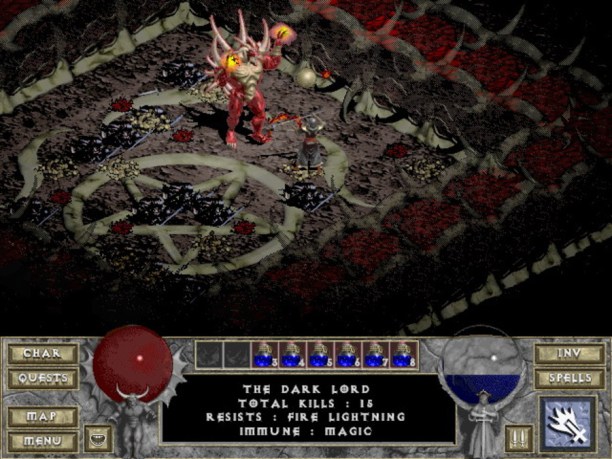 Утенок хуйню высрал, я был там 3000 лет назад. Диабло неплохая игра и атмосферная, но пройдя ее пару раз, дальше играть не хотелось, плюс сейвы там занимали всю карту памяти - ты мог конечно сохранить только персонажа, но тогда играть становилось неинтересно, приходилось пиздюхать каждый раз донизу и смотреть на загрузки. Ах да, награды квестовые у тебя забирали, так как при загрузке перса, мир заново регенился с квестами))