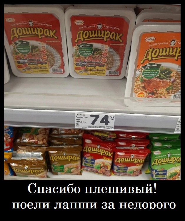 >>329294910 Я все эти дошираки, ну, может, за всю жизнь не более десятка раз ел, то есть абсолютно равнодушен и не понимаю тех, у кого подобное на регулярной основе в рационе присутствует. Вообще всё вермишельно-макаронное не люблю, именно. как ты пишешь, раз в пару лет буквально съесть могу, не чаще.