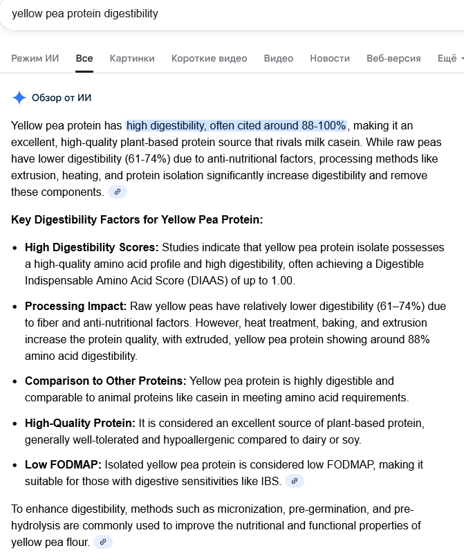 >>329289674 >В сваренном желтом горохе 6 грамм белка на 100 грамм. В порции сухого гороха 75 грамм 15-20 белка. Это четверть-треть от нормы, в зависимости от веса >здоровому мужику надо килограмм вареного гороха в день съедать минимум. Никто тебе не говорит, что нужно жрать один горох. А если бы нужно было, то был бы не килограмм, а значительно меньше. И да, съесть полкило готовой каши не равно съесть полкило сухой каши >хуевый, плохо усваиваемый белок. Ии говорит хороший белок, усвояется немногим хуже животного
