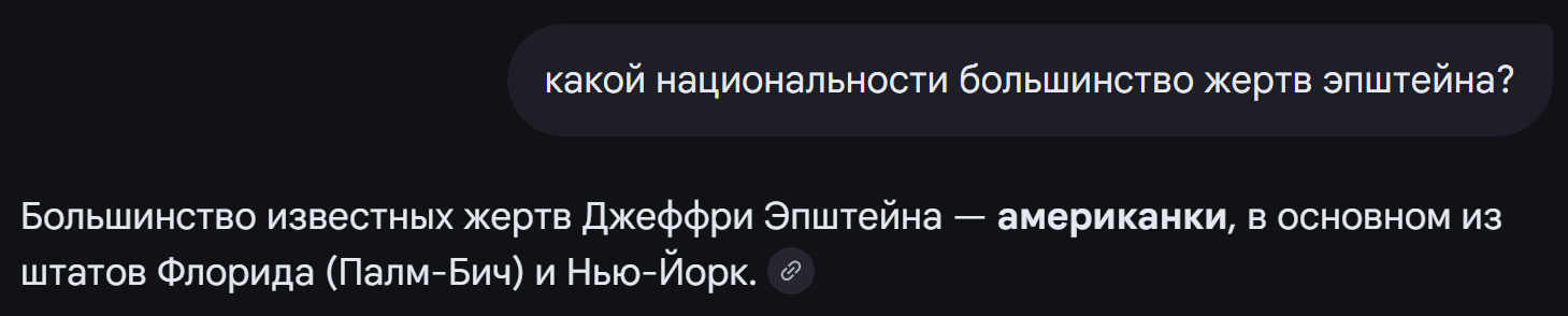 Больше всего файлы Эпштейна обличают, конечно, не западные элиты, а демоническую сущность любой среднестатистической тянки, которая за бабки поедет куда угодно, будет сосать кому угодно, будет давать срать себе на лицо, будет ебаться с похищенными лолями, будет заниматься канибализмом, будет нюхать кокс с потных полужопий старых евреев, будет смотреть как кого-то убивают, пытают, будет обряжаться в хитон и участвовать в жертвоприношениях и расчленениях детей, будет советовать задротистым миллиардерам антибиотики от ЗПП. Если люди, обличенные властью, делают это все, желая дальше возвысится над простыми пролами, увеличить пропасть дозволенного, самоутверждаются, доказывают что выше общества и его законов, то ТЯН, простые блять тян, по которым тут сохнут аноны, — выпускницы замкадных шараг по специальности швея-мотористка, протухшие стримерши, дворовые краснодарские сосалки и т.д. — будут заниматься всем этим ПРОСТО ТАК. ПРОСТО ПО ПРИКОЛУ Потому что гыгы)) ну а че)) денег дали, я три вялых хуя в жопу засунула)) зато бил гейтс)