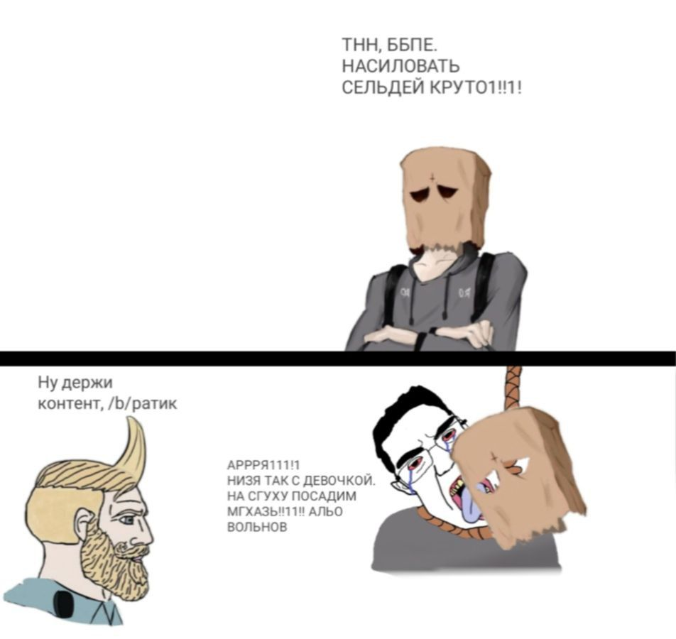 Двач такой: ряяяя, тянки совсем ебнутые романтируют убийц-скулшутеров. Так же двач, когда видит ебанутую на голову и опасную для социума девушку: ыыы, тяночка-писичка, создадим 90346908 тредов, будем рисовать арты с ней нейронкой