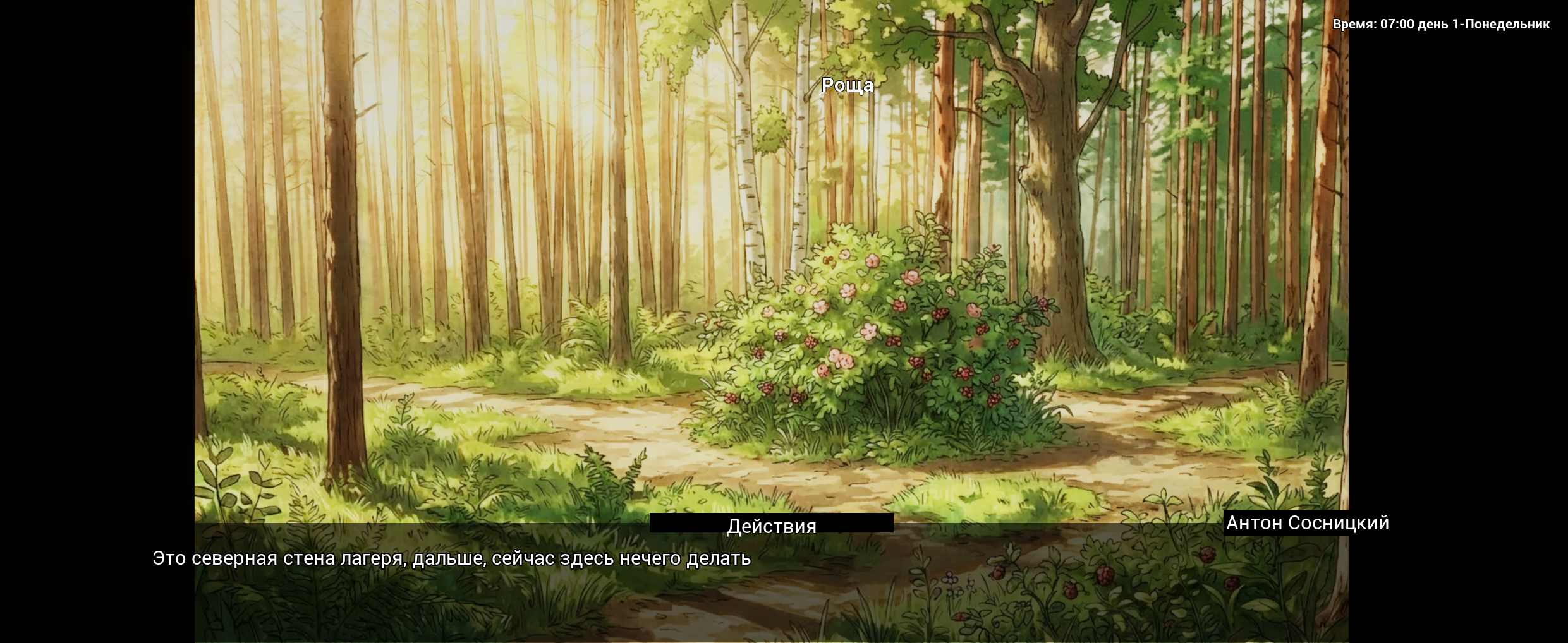 Итак, запилена карта лагеря и немного окрестностей, художник приступил к отрисовке, а я по советам анонов исправил шрифт на более читабельный и прокинул графы навигации по локациям. Сейчас все локации доступны в любое время суток, но делать там нехуй, пока что. Сейчас буду работать над интерфейсом.