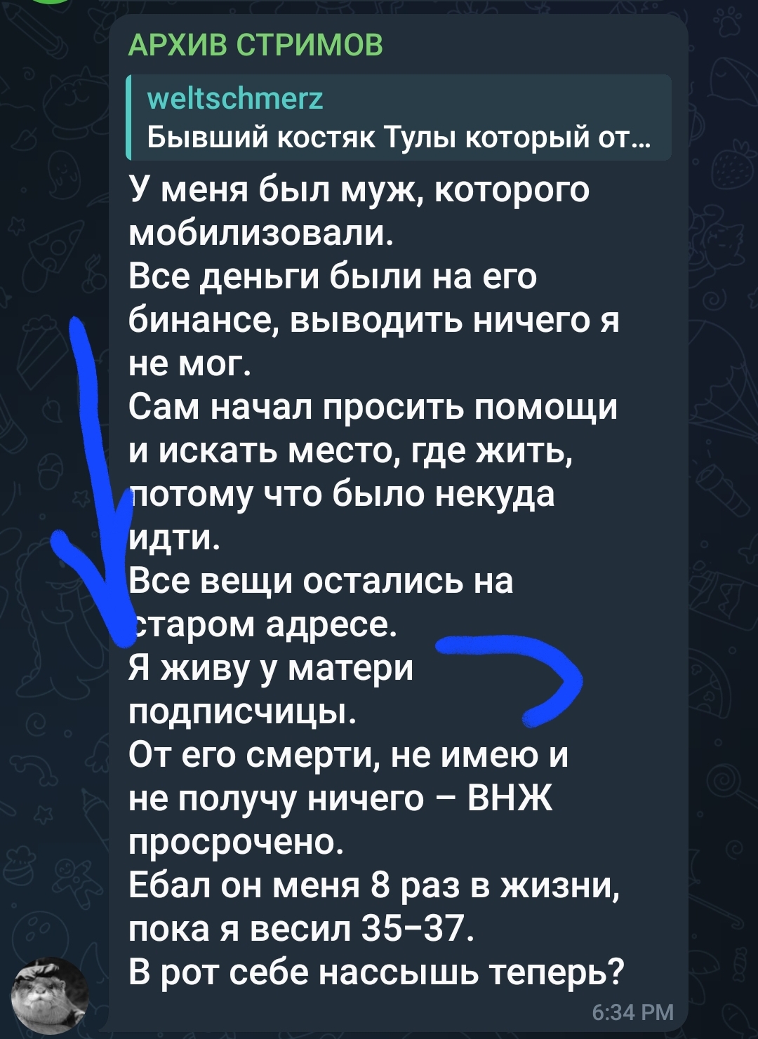 Но июнь 2025-го разрывает этот миф, как прогнивший холст. В Telegram-каналах Сигрив извергает аудиосообщения — длинные, как исповедь в палате для буйных, вязкие, как голубое сало. Она признаётся: да, замужем, да, в Черкассах, посвідка просрочена, Гнатюк утащен ТЦК, криптокошельки испарились, донаты на его карту — в небытие, арендованный дом — чужой. Всё рушится, как декорации в театре абсурда. Сигрив, словно призрак, вырванный из собственного кода, перетекает в пригород Киева. Там, среди бетонных коробок и гула проводов, она записывает видео на мове — мольбу о легализации, звучащую как крик из-под обломков её же мифа. Её голос — смесь отчаяния и дешёвого фильтра, глаза — мутные, как вода в луже.