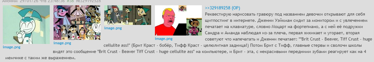 >>329555058 На фоне тех, кто реквестит в треде то, что реквестят, я чувствую полное право тоже покидать реквесты, так что не бубни лис, я в тред только по самому сериалу не против перейти чтобы в нём обсуждать рисунки по мультсериалу, если найдутся те кто тоже в роботтред пойдут, а тут сократить по минимуму. Меня кстати вообще несправедливо обманули, подложили свинью, с подсовыванием мне нейроарта вместо рисунка, так что я имею права добиваться справедливости, чтобы мне 1 нарисовали в качестве, приближенном к псевдоарту от нейрошутника, но только настоящим человеком. Пс вот некоторые реквесты, ну если кому интересен какой-то из них могу вам кто заинтересуется рефы скинуть крупнее.