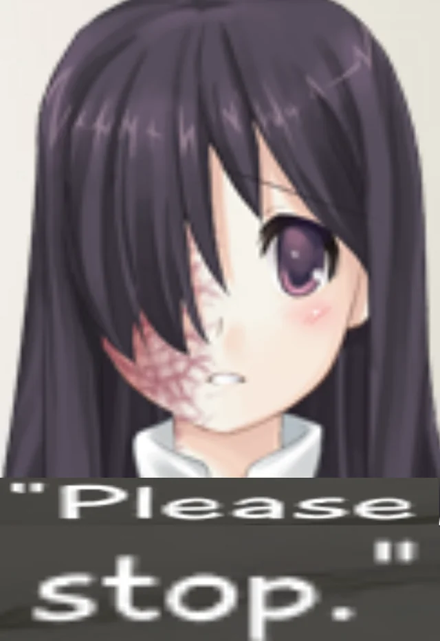 >>329712531 >Хороший тест на отсутствие эмпатии и садизм Это не тест на отсутствие эмпатии или садизм. Это проверка твоих нервов и психики. Если ты слаб, то до истинной концовки дойти не судьба. А если дошел бы, то понял что новелла про любовь и верность. >>329712635 >с многоножкой Новеллу ты не читал. Этой сцены там нет, она только в говниме