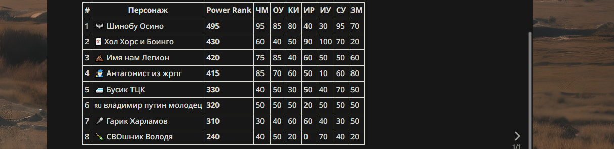 Уровень силы зависит от того кого накидают, если больше 50% персонажей обычные васяны то и уровень сил будет такой же.