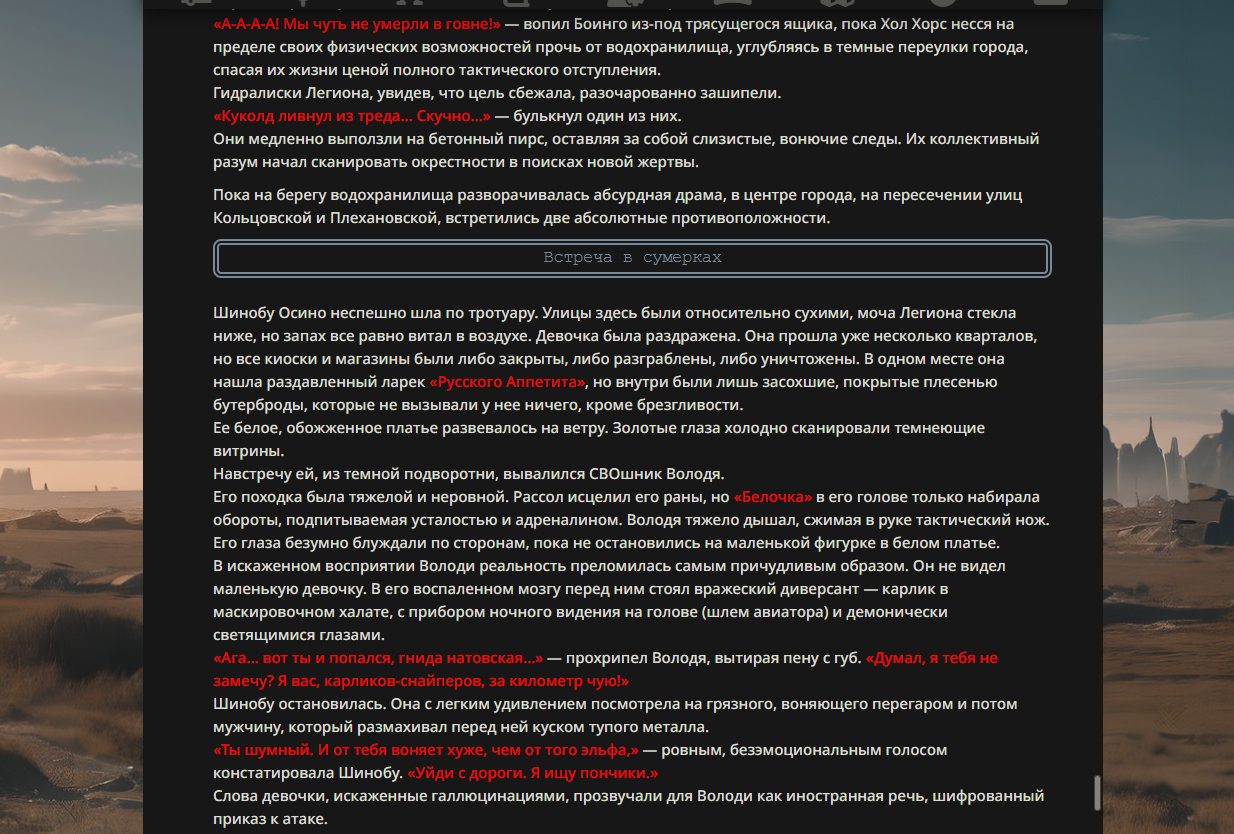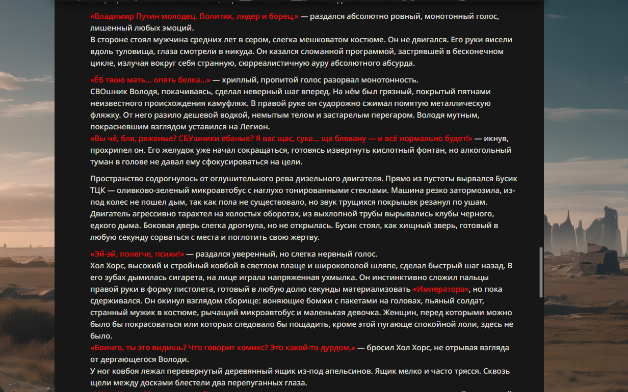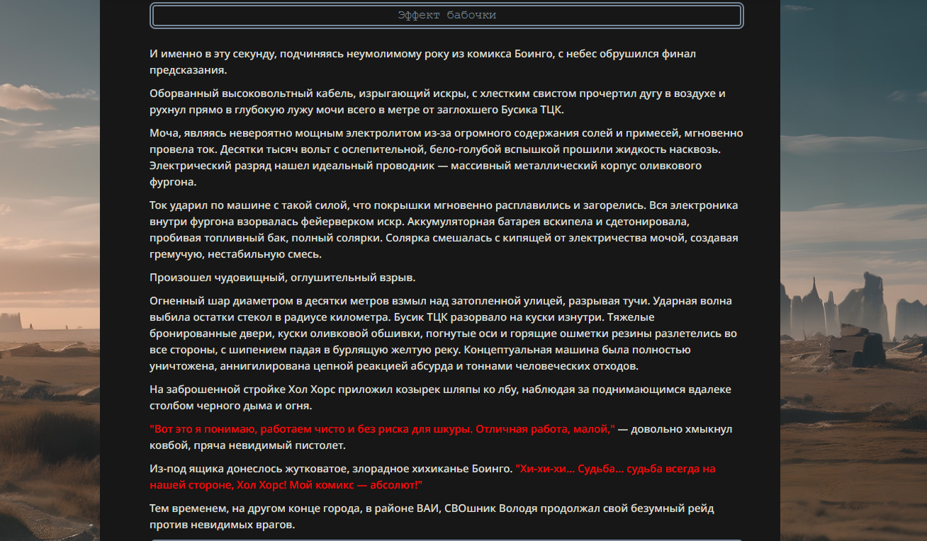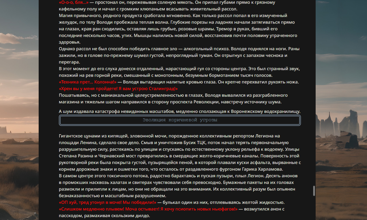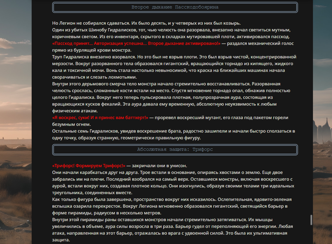 Если честно, первые истории с Танком Папусов против Священного Фиванского Отряда и Тиньковым в золотой броне были куда лучше. С них хотя бы можно было покекать всласть, а здесь это просто описание какого-то низкопробного аниме-боевика.