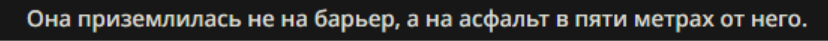 В этот момент Инженер-педант выбирается из кабины и, кряхтя, сползает по крылу. Он видит открытое пространство и кричит: — Мужики! Не бегите в центр! Тут заминировано, наверное! В таких местах всегда мины ставят!