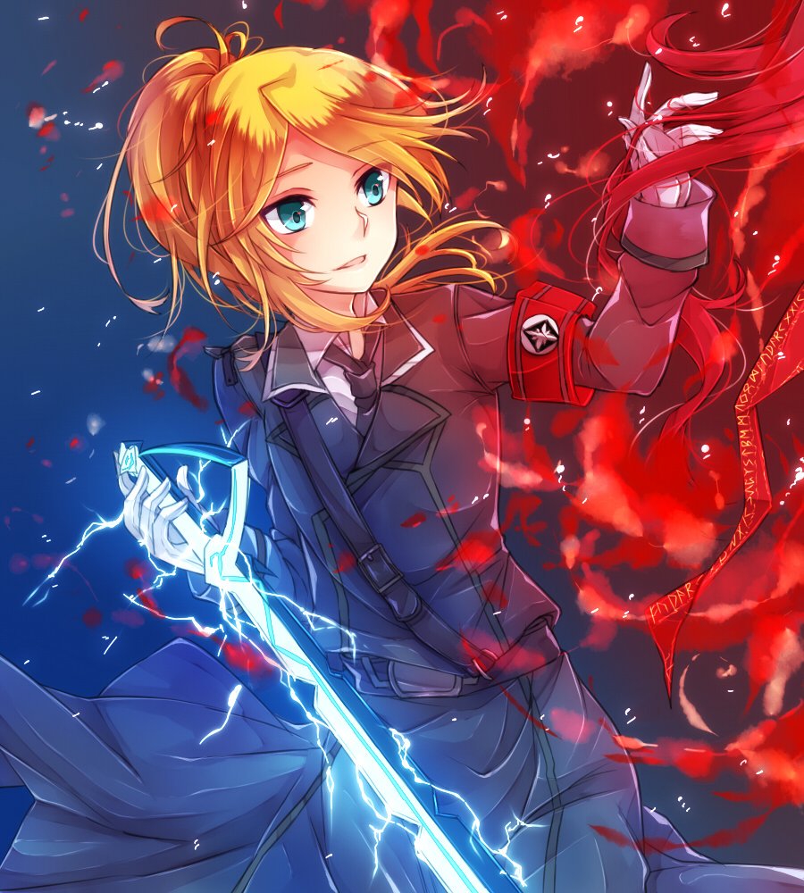 Облачён в золотую броню, с силовым мечом. </character>