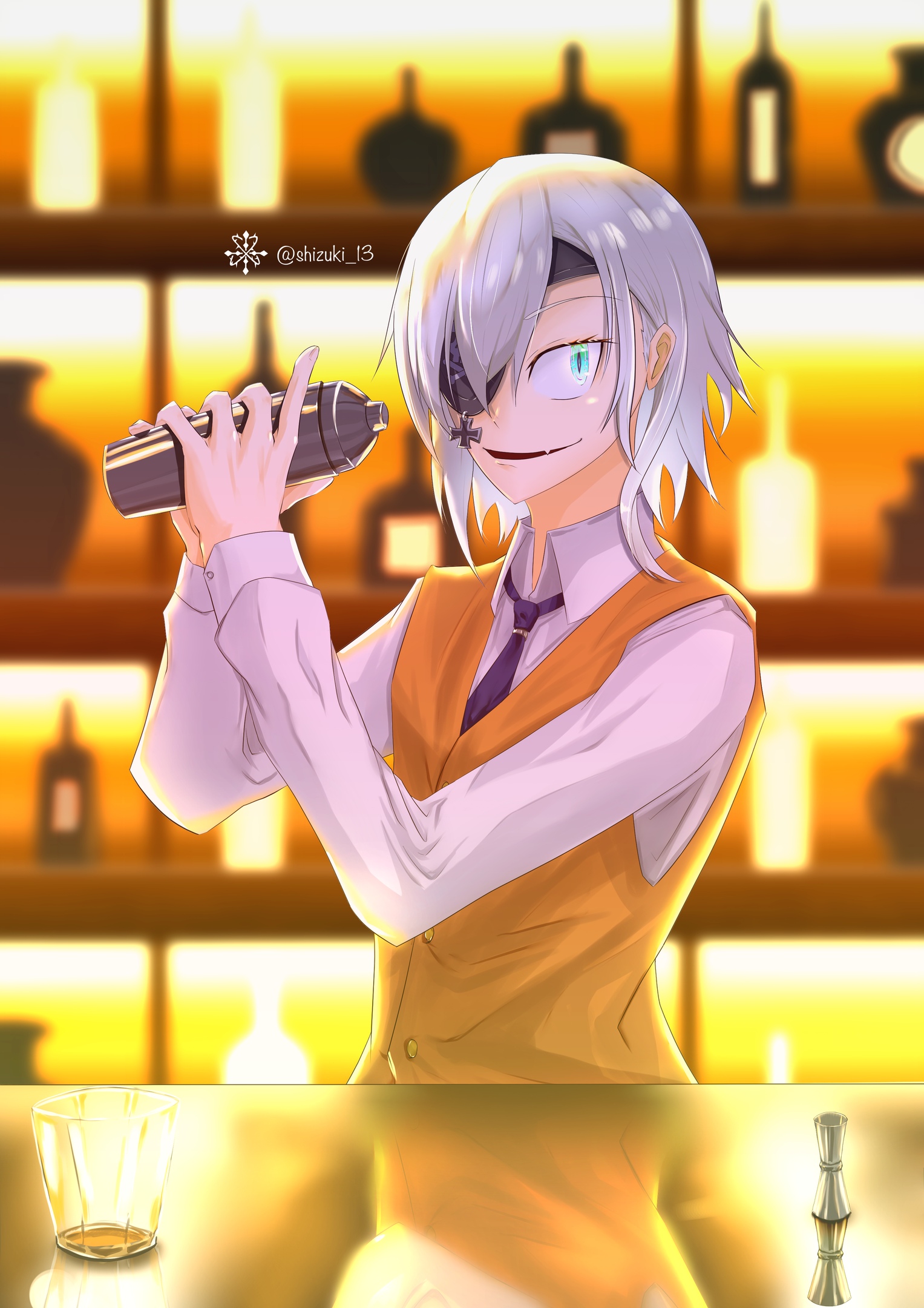 Шинобу Осино. Выглядит как девочка лет восьми. Длинные светлые волосы, золотые глаза. Носит белое платье с оборками, шлем авиатора на голове, на ногах кроссовки. Выражение лица обычно скучающее или насмешливое. На самом деле вампир возрастом около шестисот лет, некогда известная как Киссшот Ацеролаорион Хартандербрейд, король среди вампиров. Потеряла почти всю свою силу и застряла в детском облике. Способности. Вампирская регенерация позволяет восстанавливаться даже из серьёзных повреждений, хотя в ослабленном состоянии это занимает больше времени. Сверхчеловеческая скорость и сила непропорциональны её телу, она способна пробивать бетон и двигаться быстрее глаза. Поглощение энергии через поглощение крови или жизненной силы противника, что временно усиливает её. Манипуляция тьмой, способна создавать давящую ауру страха вокруг себя. При достаточном насыщении кровью может частично вернуть облик Киссшот, становясь значительно сильнее, глаза начинают светиться багровым, вокруг тела появляется тёмная аура. Характер. Говорит мало, но метко. Держится с ленивым превосходством существа, которое видело слишком много. Любит пончики. В бою предпочитает заканчивать всё быстро и скучающе, но если противник её заинтересует, начинает играть. Привязана к Арараги, хотя никогда не признает этого прямо.