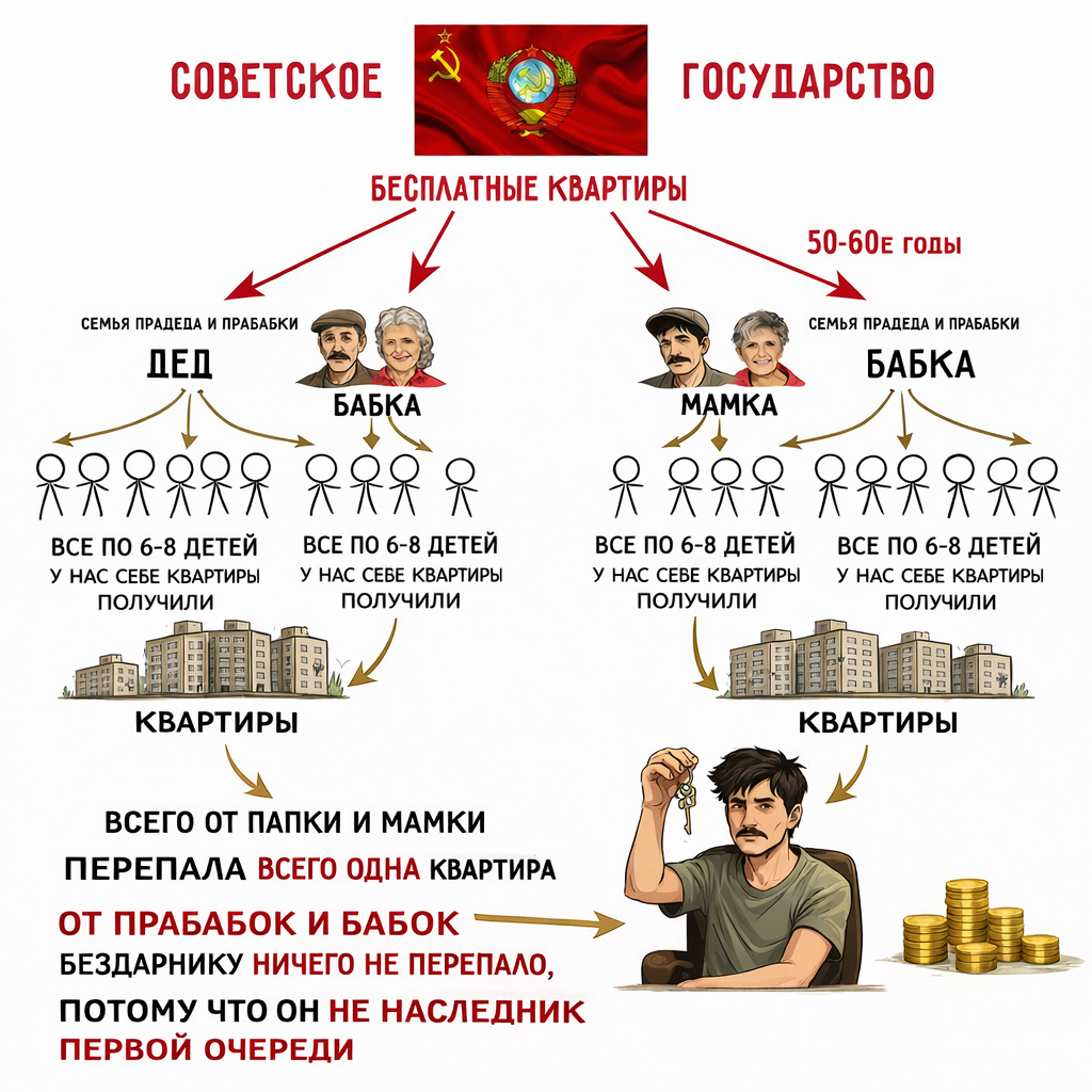 >>330175383 Картинка сделана долбоёбом, ибо квартиры выдавались семьям, то бишь у битарда их максимум 3, а учитывая, что у твоих предков с большой вероятностью есть не только твои мамка с папкой, квартиры надо делить с двоюродными родственниками.